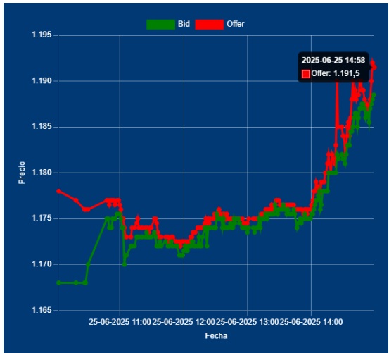 📌 15,00hs📈Cierre del Dólar Divisa: 1188,00 – 1192,00 entre Bancos. Hubo un orden de IMPO Grande, pero sobre el final hubo salida de inversores bursátiles, por la calificación JP Mogan Hipótesis y Sugerencia, Cambiaria