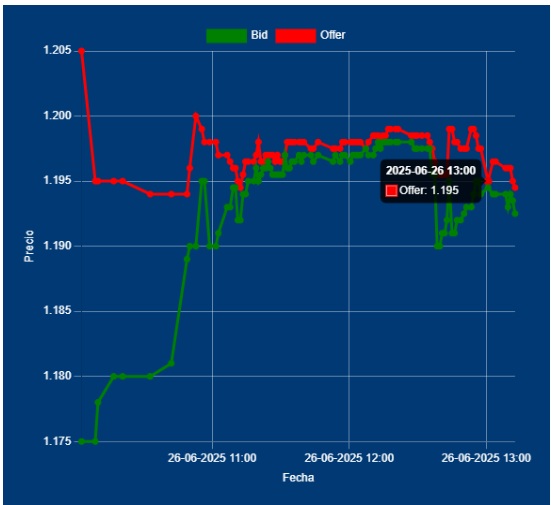 📌 14,00Hs 📉📈📉Cotización del Dólar Divisa: 1186,00 – 1195,00 entre Bancos. Muy volátil, brechas amplias, porque no hay volumen. Sigue, monitoreado por el BCRA