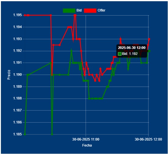 📌 12,00Hs📈Cotización del Dólar Divisa: 1192,00 – 1194,00 entre Bancos. Está empezando a consolidar un rango operativo, entre 1189 y 1194 entre bancos