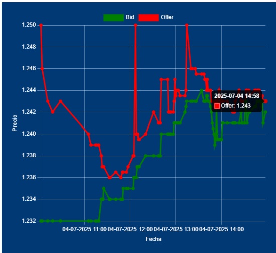📌 15,00Hs 📈Cierre Valor de referencia al LUN 07-JUL del Dólar Divisa: 1242,00 – 1243,00 entre Bancos. Volumen operado, Valor Lunes: USD 76,10 millones + Bill USD 39,18 millones