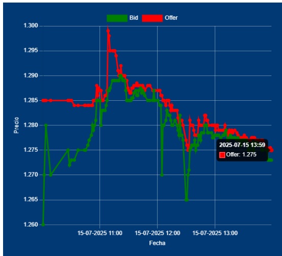 📌 14,00Hs 📉Cotización del Dólar Divisa: 1272,00 – 1275,00 cotización entre Bancos. Baja por la noticia, donde la Justicia de EE.UU. frena fallo que ordenaba ceder el 51% de YPF a los bonistas, hasta el 22-JUL