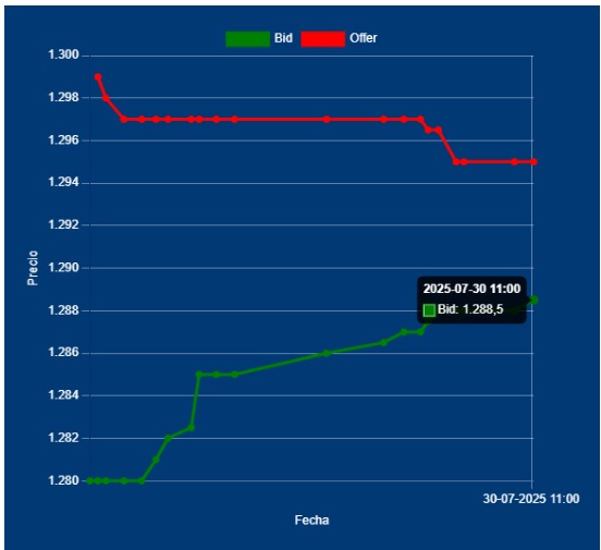 🚨 11,00 Hs Apertura del Dólar Divisa: Bid 1288,00 Offer 1295,00 cotización entre Bancos. Resultado de la licitación de LECAP, BONCAP del Tesoro, donde tomó como mínimo 50%. Hay que ver como reacciona, el MULC. Creemos que es un nivel, que no condice con los niveles de inflación que se desea. De alguna forma, este costo se traslada en algún momento.