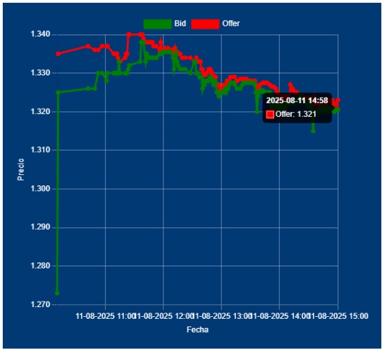 📌 15,00 Hs Cierre del Dólar Divisa: Bid 1320,00 Offer 1323,00 cotización entre Bancos. Mejoró un poco el volumen genuino (USD 260 millones), pero están adelantando divisas, para aprovechar la colocación a Tasa en Caución Bursátil. Sugerencia, cerraría IMPO en estos niveles.