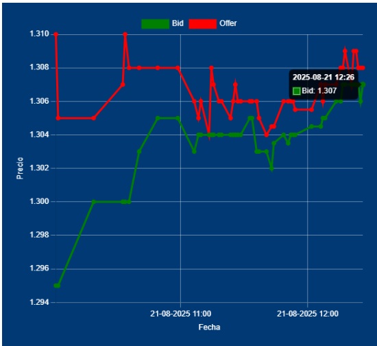 📌📈11,30 Hs Apertura del Dólar Divisa: Bid 1304,00 Offer 1306,00 cotización entre Bancos. Se opera levemente por arriba de $ 1300,00 en el MULC, convalidando nuestra apreciación del día de ayer. Esperemos que consolide, en este nivel.