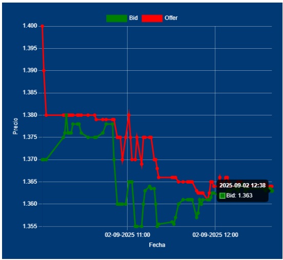 📌🔁12,30 Hs Cotización del Dólar Divisa: Bid 1363,00 Offer 1364,00 cotización entre Bancos. Estabilizado el MULC, pero a ciencia cierta, no sabemos si está el Tesoro interviniendo, donde las Tasas Pasivas, están en torno a 60% hasta semana antes del 26-OCT