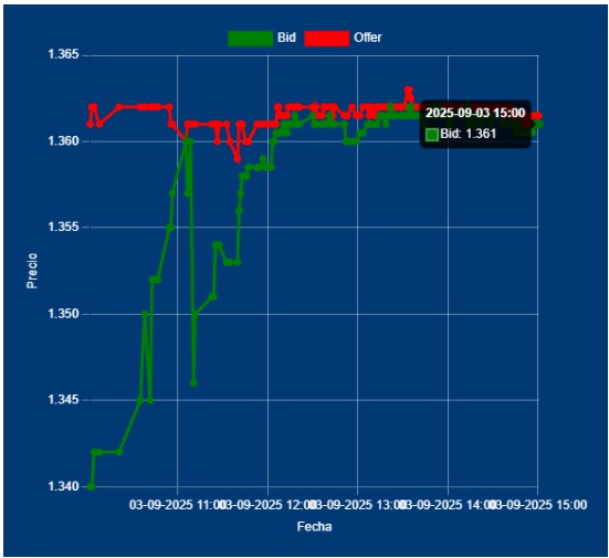 📌🔁15,00 Hs Cierre del Dólar Divisa: Bid 1361,00 Offer 1362,00 cotización entre Bancos. Con casi USD 200 millones de volumen genuino, cierra una jornada, donde solo se notó la presencia de Compradores reales. Abastecido por el Tesoro y alguna EXPO ocasional.
