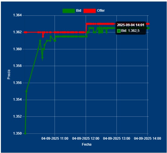 📌🔁14,00 Hs Cotización del Dólar Divisa: Bid 1362,50 Offer 1363,00 cotización entre Bancos. Vamos camino a un volumen record de demanda de Divisa en COMEX, donde el único vendedor es el Tesoro.