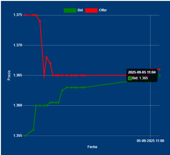 📌📈11,00 Hs Apertura del Dólar Divisa: Bid 1365,00 Offer 1366,00 cotización entre Bancos. Dejó subir $ 2,00 en nuevo «crawling peg». El Tesoro habría vendido u$s300 millones netos, desde el anuncio de intervenir en el MULC. Ayer fue el casi único, vendedor. Riesgo País📈893pb
