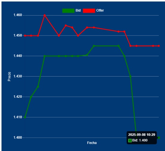 📌📈10,30 Hs Apertura del Dólar Divisa: Bid 1400,00 Offer 14406,00 cotización entre Bancos. Solo hay precio de referencia, sin operaciones registradas en el MULC
