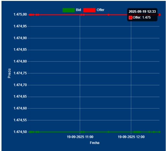 📌🔁12,30 Hs Cotización del Dólar Divisa: Bid 1474,50 Offer 1475,00 cotización entre Bancos. Es el BCRA, el único vendedor y casi no hay EXPO