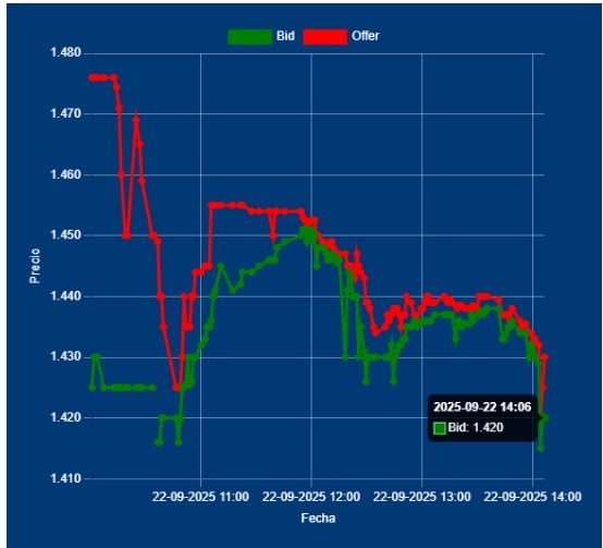 📌📉12,30 Hs Cotización del Dólar Divisa: Bid 1431,00 Offer 1439,00 cotización entre Bancos. Se adelantan algunos Exportadores No Tradicional, en función el Decreto 682-2025 para los AgroExportadores
