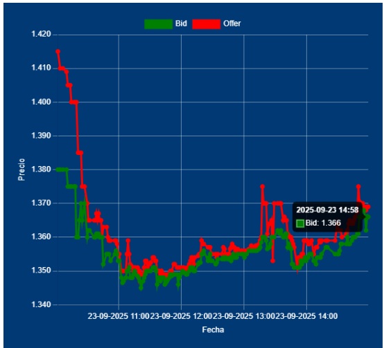 📌📈15,00 Hs Cierre del Dólar Divisa: Bid 1366,00 Offer 1369,00 cotización entre Bancos. Sobre el aparen ordenes de Compra, pero de Importadores.