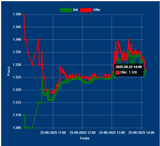 📌📈🔁14,00 Hs Cotización del MULC – Dólar Divisa: Bid 1327,00 Offer 1328,00 cotización entre Bancos. Se mueve el MULC, al compás del humor de los pequeños productores agropecuarios y ganaderos, si están dentro del cupo o no del Decreto 0 (cero) de Retenciones.