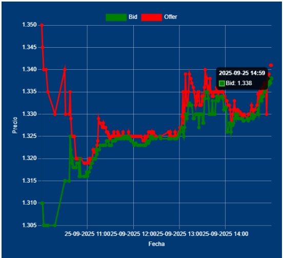📌📈15,00 Hs Cierre del MULC – Dólar Divisa: Bid 1338,00 Offer 1341,00 cotización entre Bancos. Hubo mucha IMPO en el día hoy, dado que consideran un valor razonable para hacer Pagos al Exterior. Máxime que los rendimientos de las Tasa Pasivas, han bajado sustancialmente. Pero la duda es: ¿que sucederá con el MULC, una vez que ingresen los USD 7000 millones?