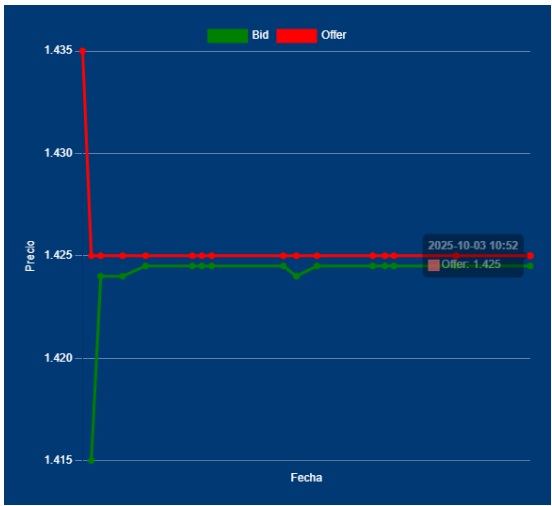 📌🔁11,00 Hs Apertura del MULC – Dólar Divisa: Bid 1424,00 Offer 1425,00 cotización entre Bancos. El Tesoro, sigue y seguirá vendiendo, en este nivel. En las 2 últimas ruedas, vendió USD 750 millones. Hay que estar atentos, a posibles nuevas regulaciones cambiarias de parte del BCRA