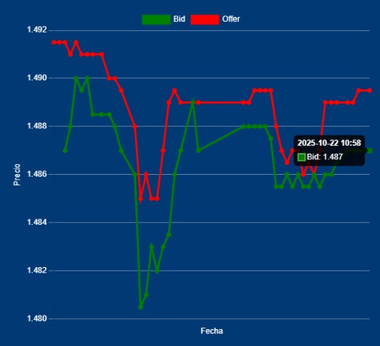 📌📈🔁11,00 Hs Apertura del MULC – Dólar Divisa: Bid 1487,00 Offer 1489,50 cotización entre Bancos. Es una continuidad la tendencia de ayer, Mercado Comprador y vendedor solo el Tesoro de 🇺🇸 o en su defecto el BCRA, si toca el techo.