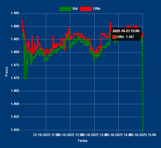 📌📈 15,00 Hs Cierre del MULC – Dólar Divisa: Bid 1479,50 Offer 1487,00 cotización entre Bancos. El cierre del MULC, es artificial. Dado que han registrado la última operación del día, para mostrar otra realidad del mercado. El volumen, fue menor que ayer, pero representativo. Operado USD 435 millones de Divisa en COMEX. Mañana veremos, como cierra al día previo a las elecciones.
