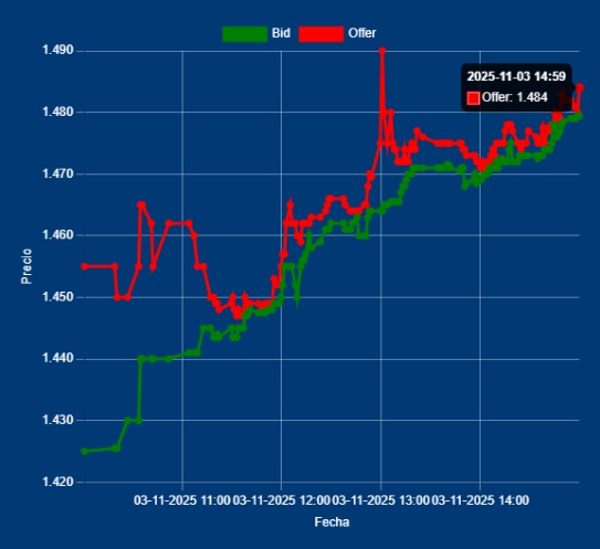 📌📈15,00 Hs Cierre del MULC – Dólar Divisa: Bid 1480,00 Offer 1484,00 cotización entre Bancos. El MULC, convalidó la tendencia que venimos sugiriendo desde la semana pasada. Estamos entrando en el radar,📡de valores que debería volver a vender el Tesoro de 🇺🇸. Sugerencia Cambiaria: seguimos sosteniendo: ✔️ Para las IMPO: haría los Pagos al Exterior.✔️ Para las EXPO: Adelantaría liquidar, a medida que nos acercamos al techo de la banda, sin prisa, pero sin pausa.