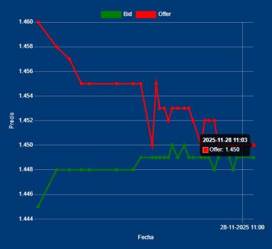 📌🔁11,00 Hs Cotización del MULC entre Bancos – Dólar Divisa Bid 1449,00 – Offer 1450,00 La primeras operaciones, se están concertando en valores de cierre de ayer. Se nota que habrá volumen, luego del feriado en 🇺🇸 El techo de la banda superior del BCRA, es $ 1509,98