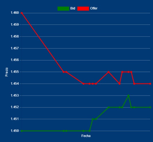 📌🔁11,00 Hs Cotización del MULC entre Bancos – Dólar Divisa Bid 1452,00 – Offer 1454,00 Evidentemente en 1450,00 ha consolidado un valor, donde si bien se opera con poca volatilidad, pero de fondo sigue siendo comprador. Motivo: se espera la famosa «lluvia verde», ya sea por los AgroExportadores o cuando han el ingreso de las Emisiones de Deudas de las distintas Provincias y Empresas. Obviamente están esperando, cuales sería las reglas cambiarias a partir del 10-D
