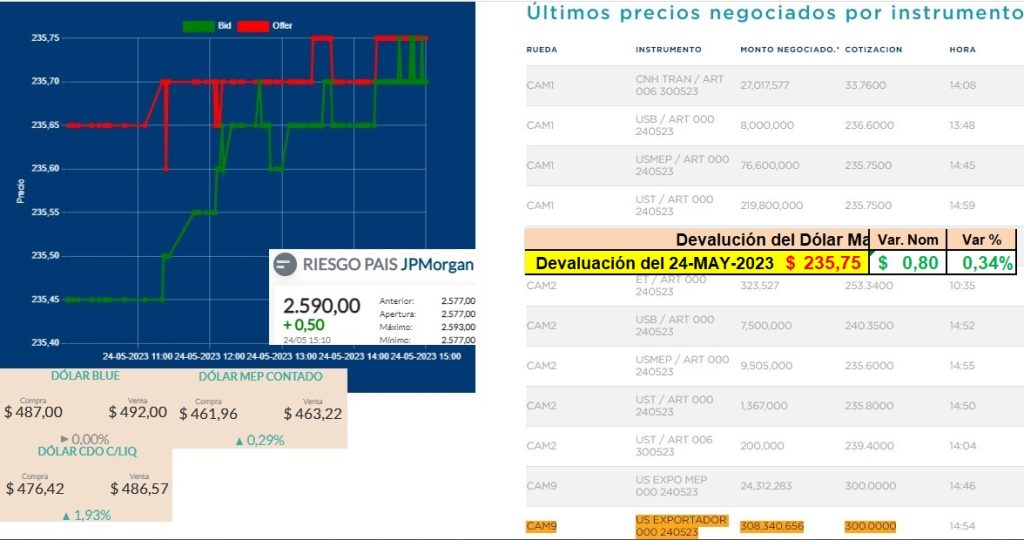 A las 15,00 hs Dólar Futuro: $ 331 AGO-2023, $ 480 Fin Dic-2023 y $ 645 Fin de Abr-2024